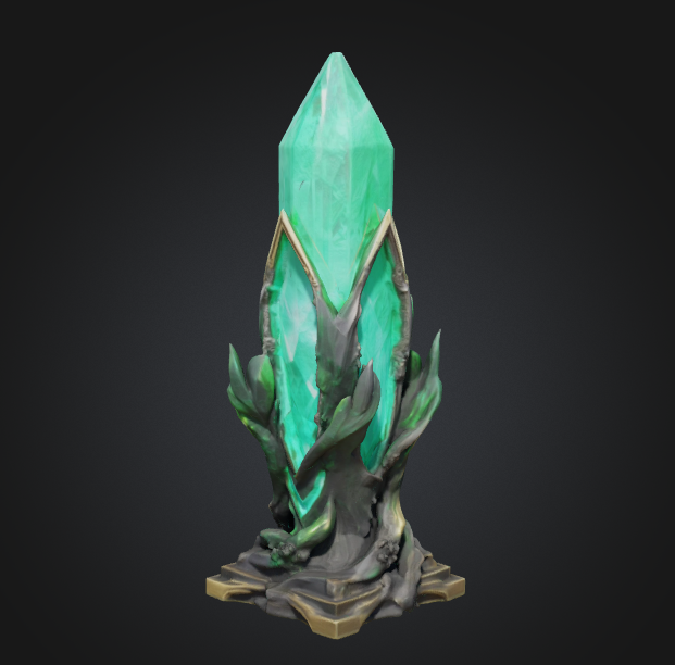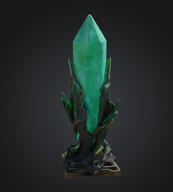 In the age when elves still walked among mortals, they created seven crystal spires to maintain the world's life force. This emerald spire, the Heart of the Living Forest, was their greatest achievement. During the Great Withering, when a mysterious plague threatened to destroy all vegetation, the elven sages channeled their collective life force into the crystal, creating an eternal beacon of natural energy. The spire now serves as both a reservoir and amplifier of healing magic, its green light pulsing in rhythm with the heartbeat of the forest itself. Those who make pilgrimages to the spire speak of experiencing profound rejuvenation, while druids and healers often seek its blessing to enhance their restorative magic. The golden patterns in its base are actually a complex magical circuit, designed to distribute the crystal's energy throughout the surrounding lands.